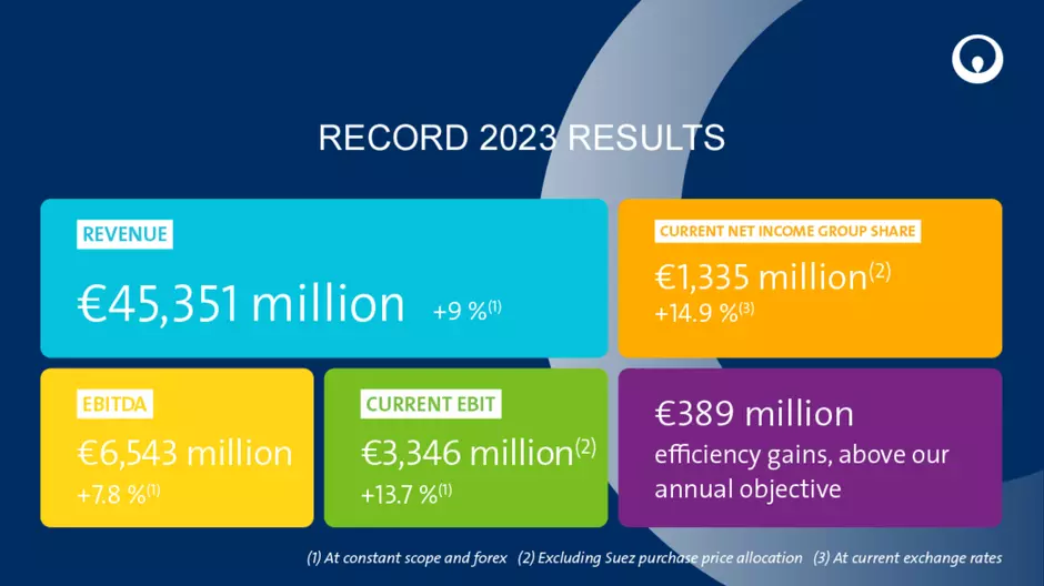 The Group is also positioning itself as a gas pedal of technological and social innovation. From the use of generative artificial intelligence to carbon capture technologies, the Group is investing heavily in innovation to develop the solutions of tomorrow. Social innovation too, with Veolia Cares, a common base of social protection launched by Veolia in 2023, and aimed at establishing 5 common pillars for its 213,000 employees worldwide.