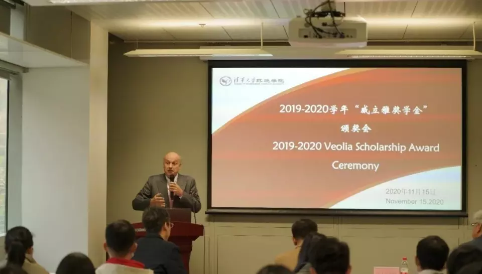 The award ceremony of the Veolia Top Innovative Talent Scholarship of the School of Environment of Tsinghua University for the Academic Year of 2019-2020 was held in the morning on 15th November.
