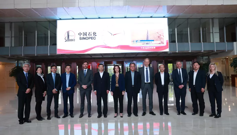 • Estelle met with Yu Baocai, Vice President of Sinopec Group and CEO of Sinopec Corp. at the headquarters of Sinopec. Both parties had a deep exchange of views on cooperation in joint projects, energy saving and environmental protection, plastic recycling, clean energy, and ESG, and explored how to extend the achievements made by Yanshan to other related projects and environmental protection fields to create more "role-model" cases of ecological transformation.