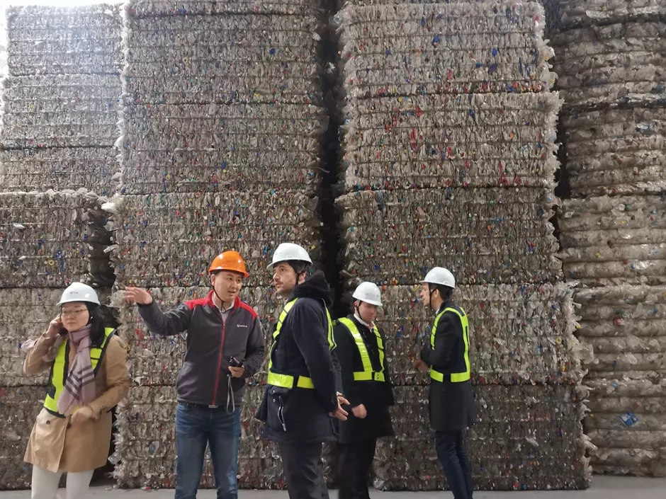 For the fifth stop of his tour in China, Christophe visited Anji, where the Huafei Plastic Recycling Project locates. The Project transform plastic waste into high-quality recycled raw materials, including recycled PET, HDPE and PP, all of which are FDA-approved. Meanwhile, Christophe and his team also visited the smart warehouse for the Project.