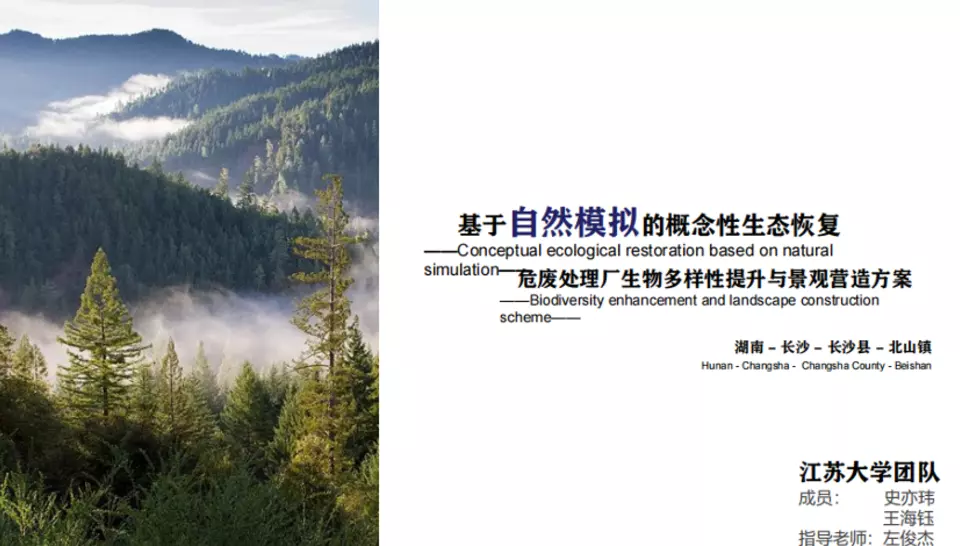 In the end, the project of "Conceptual Ecological Restoration Based on Natural Simulation" from the Jiangsu University team stood out among the five teams and won the first prize. This design focuses on the ecological design, ecological restoration, water cycle optimization and de-industrialization" scene construction after the closure of the landfill in the plant area, and also sets the foundation for the biodiversity of the region.